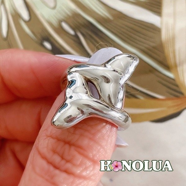 Anillo de plata inflada (electroformatura) con diseño de colas de ballena.
