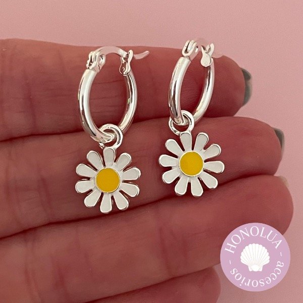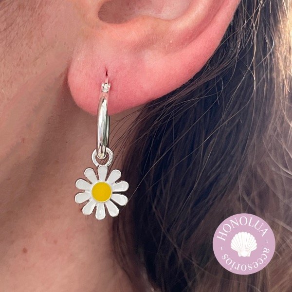 Argollitas de 15 mm de diámetro con dije de margarita.