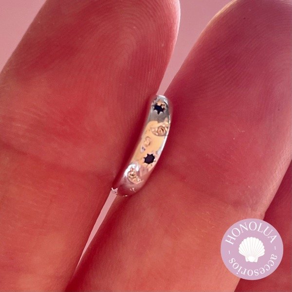 Argollita de 12 mm de diámetro con estrellas y puntos de luz azules y cristal.