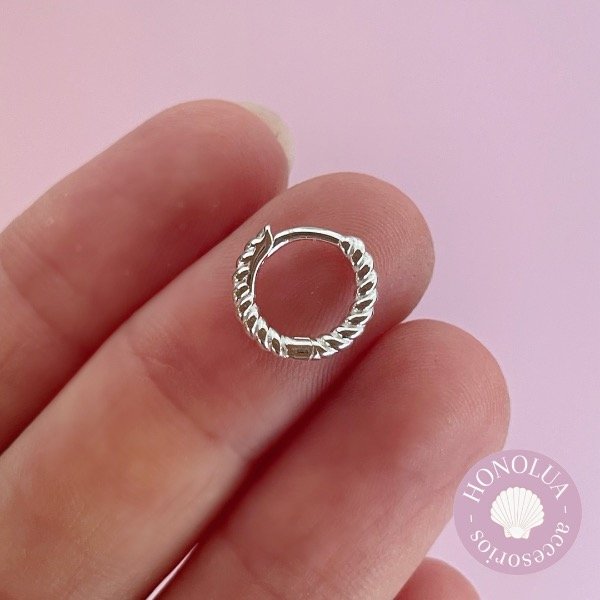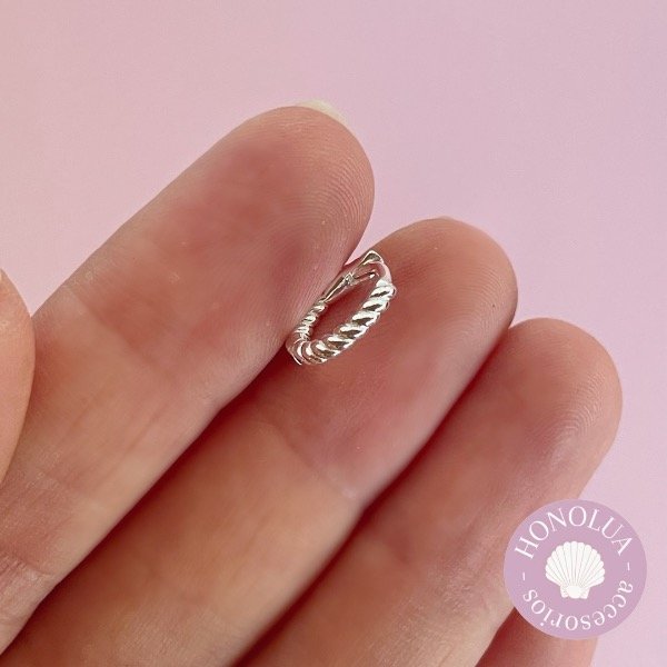 Argollita torzado. Mide 10 mm de diámetro. Cierre tipo click.