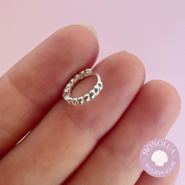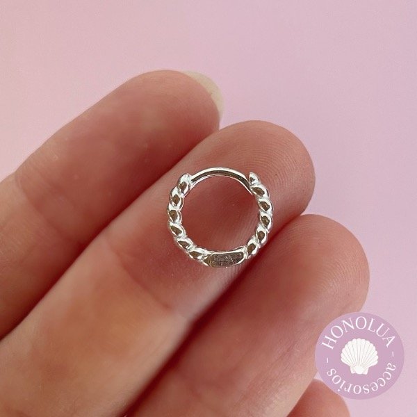 Argollita torzado. Mide 12 mm de diámetro. Cierre tipo click.